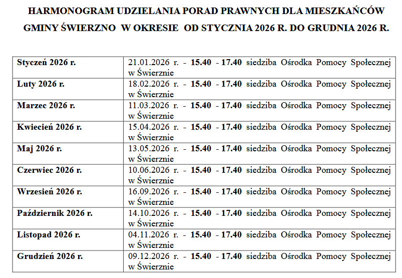 Zapraszamy na bezpłatne poradnictwo, zapisy indywidualne w godzinach konsultacji specjalistów lub telefonicznie 913828169 w siedzibie Ośrodka Pomocy Społecznej w Świerznie.